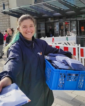 Unsere Promoter*innen sind an den ersten beiden Adventssamstagen im Q6/Q7 mit Flyern unterwegs um