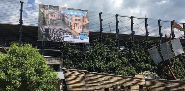 Daher rühren wir schon fleißig die Werbetrommel für die Heidelberger Schlossfestspiele mit unserem Bigbanner im Zoo Heidelberg. Noch bis zum 29.07. kann man Konzerte, Theater, Tanz und Musicals unter freiem Himmel erleben.