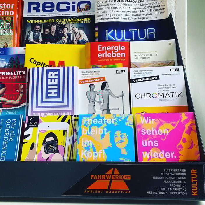 Wir sind so langsam wieder ins Rollen gekommen und haben dann doch noch die Sommerreifen aufgezogen. Seit einigen Wochen sind wir wieder auf der Straße und nach und nach füllen sich unsere Systeme wieder. Es erreichen uns täglich neue Flyer, Magazine und Plakate und die Kulturinstitutionen beeindrucken uns immer wieder mit kreativen Lösungen, um ihr Publikum zu erreichen. Nebenbei versuchen wir Initiativen zu unterstützen oder den Häusern, die aktuell noch geschlossen sind, unsere Module kostenlos zur Verfügung zu stellen.