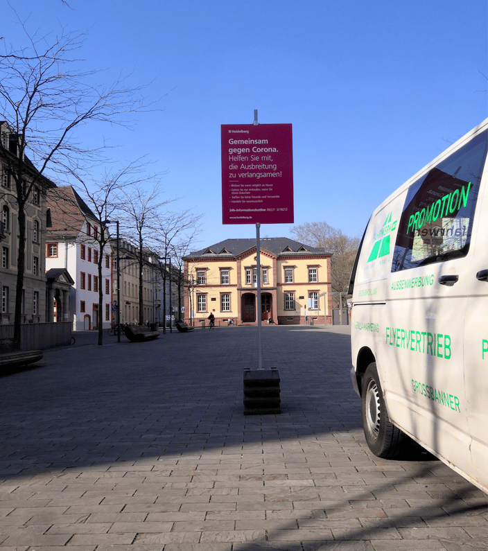 Gemeinsam gegen Corona, bitte auch auf den Heidelberger Wochenmärkten. Im Auftrag der Stadt Heidelberg haben wir Alu-Dibond-Schilder in Din/A0 mit Sicherheitshinweisen produziert und auf allen Wochenmarktplätzen platziert, damit ihr regional, nachhaltig und natürlich auch sicher einkaufen könnt.