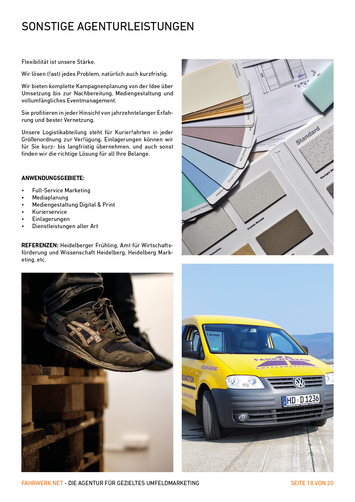 Von Flyerauslage über Außenwerbung und Promotion, bis hin zu allgemeiner Werbetechnik, Gestaltung und Druckabwicklung wickeln wir gerne alles ab, was Sie zur erfolgreichen Kommunikation benötigen.